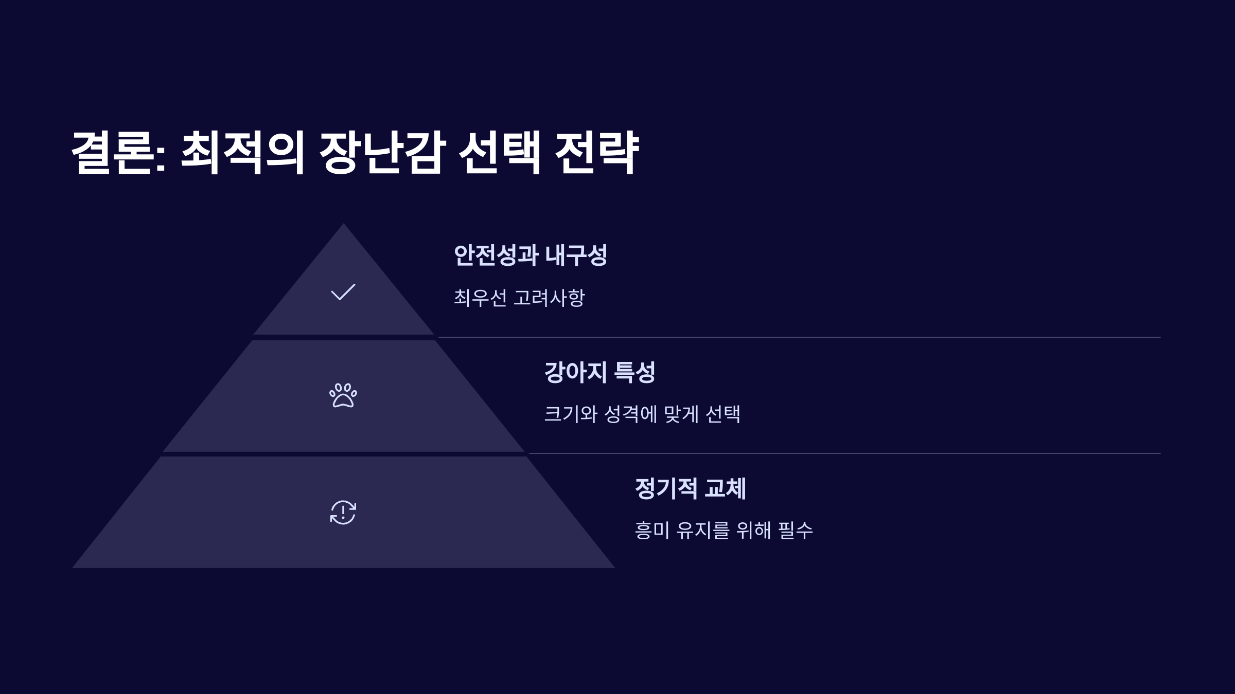 이 기준만 잘 지킨다면 어떤 장난감이든 강아지에게 큰 만족감을 줄 수 있습니다.
