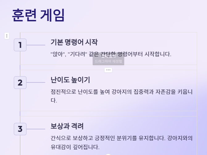특히 "앉아", "기다려" 같은 기본 명령어를 활용하면 좋습니다.