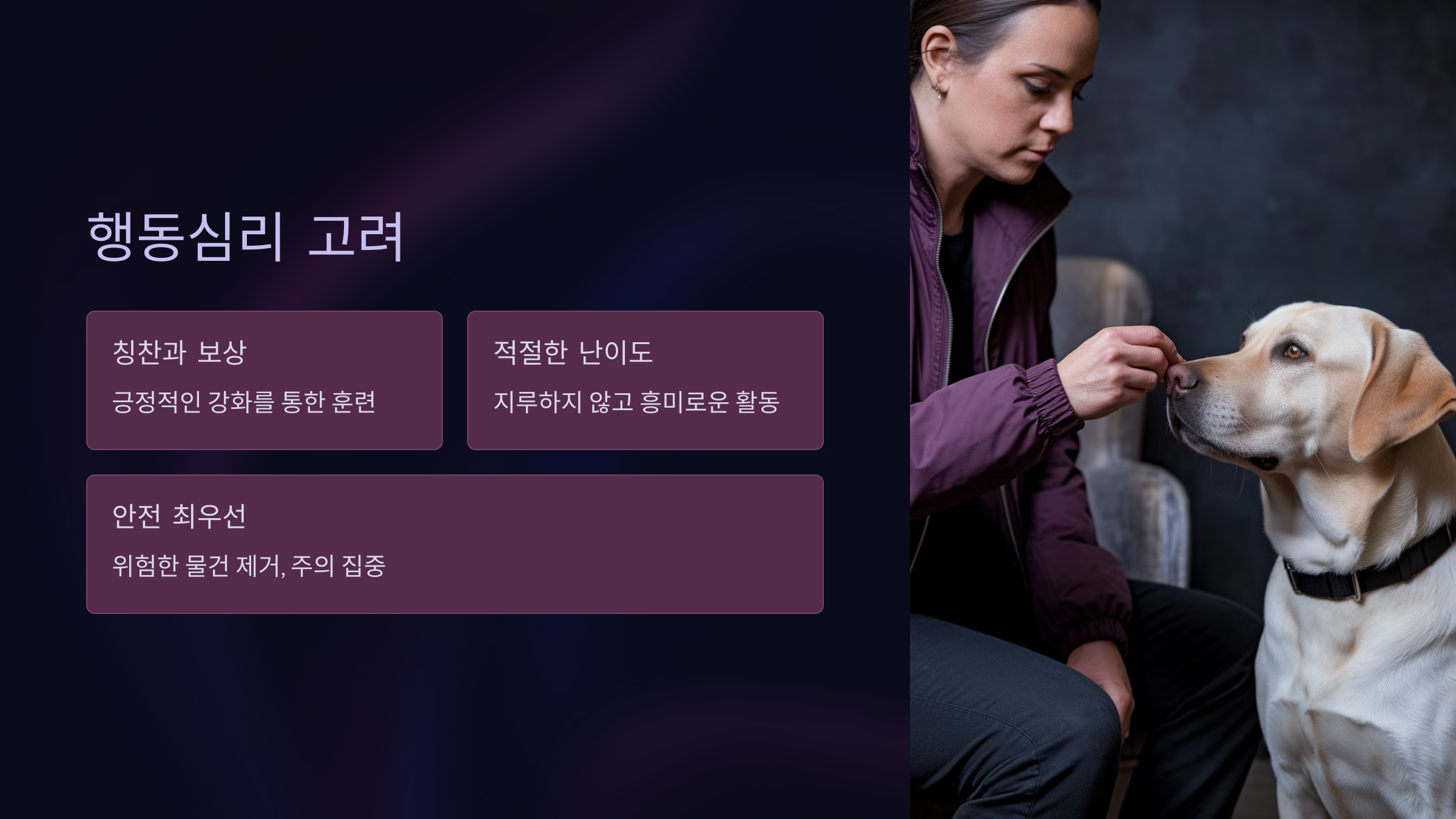 A5: 가능합니다. 칭찬이나 장난감을 활용해 반려견의 흥미를 유지할 수 있습니다.