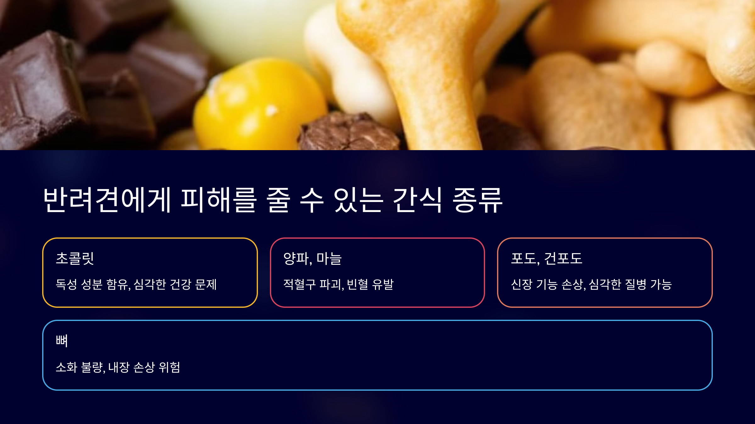 그러나 모든 간식이 반려견에게 좋은 것은 아닙니다. 일부 간식은 영양이 풍부하고 건강에 도움이 되지만, 어떤 간식은 독성이 있거나 소화 문제를 일으킬 수도 있습니다. 따라서 반려견에게 올바른 간식을 선택하는 것은 매우 중요합니다.