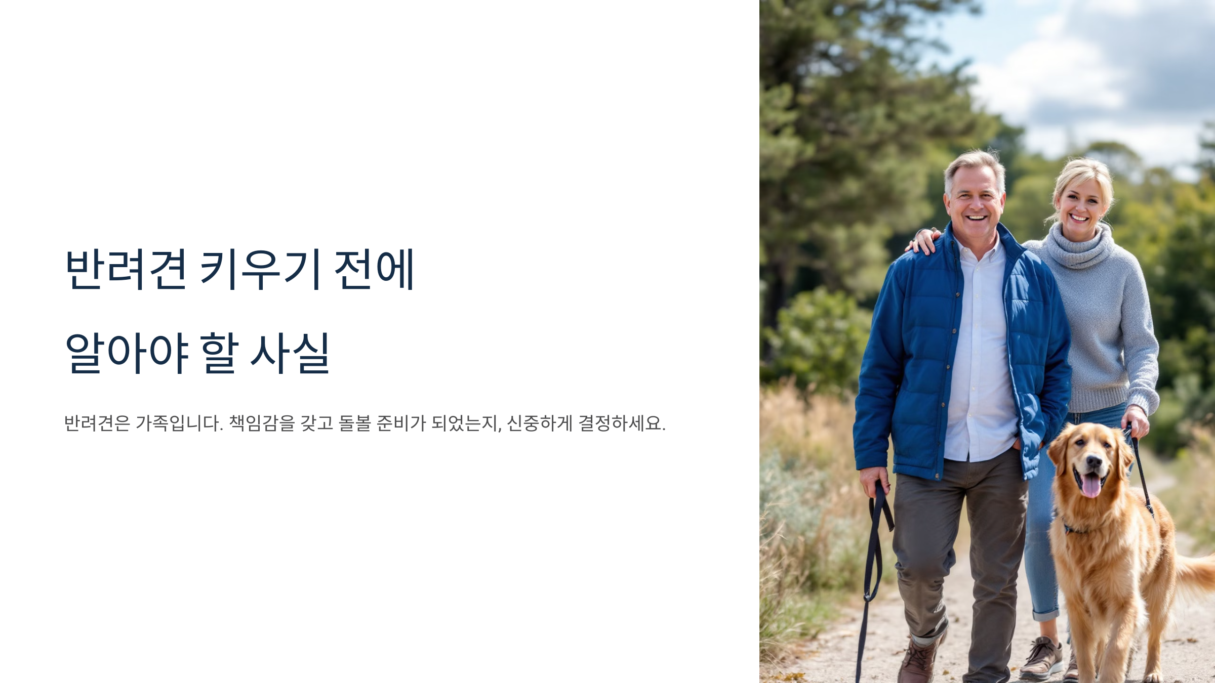 오늘은 반려견을 키우기 전에 반드시 알아야 할 5가지 중요한 사실을 소개합니다. 이 내용을 숙지하면 반려견을 더 행복하고 건강하게 키울 수 있으며, 보호자로서의 책임도 다할 수 있습니다. 반려견을 입양하려고 고민 중이라면, 아래 내용을 꼼꼼히 살펴보시고 신중하게 결정하시길 바랍니다.
