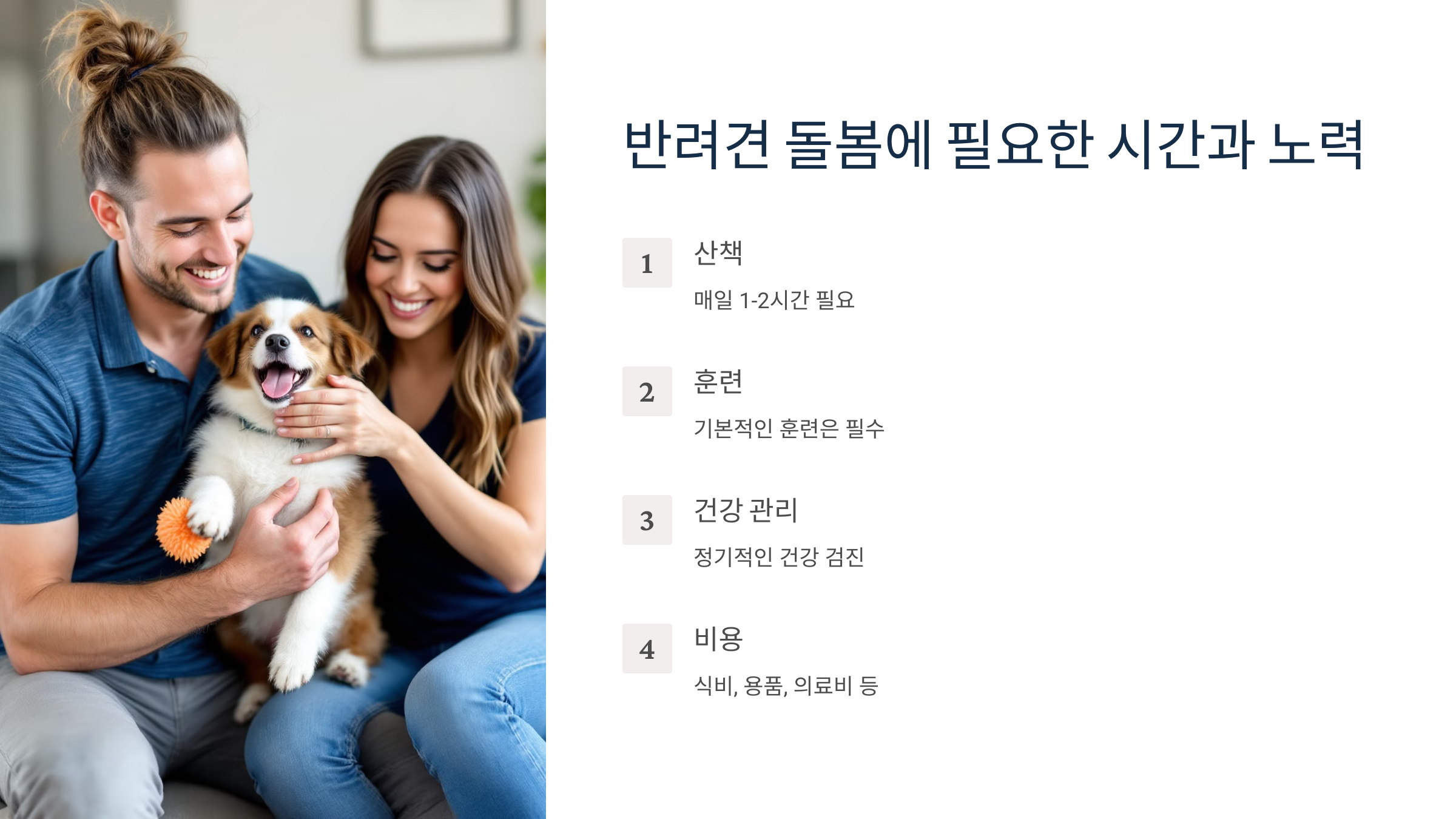 반려견을 키우면 보호자의 생활 패턴에도 많은 변화가 생깁니다. 매일 정해진 시간에 산책을 시켜야 하며, 일정한 식사 시간도 유지해야 합니다. 또한, 외출이나 여행을 할 때도 반려견을 고려해야 하므로 자유로운 생활이 어려울 수 있습니다.