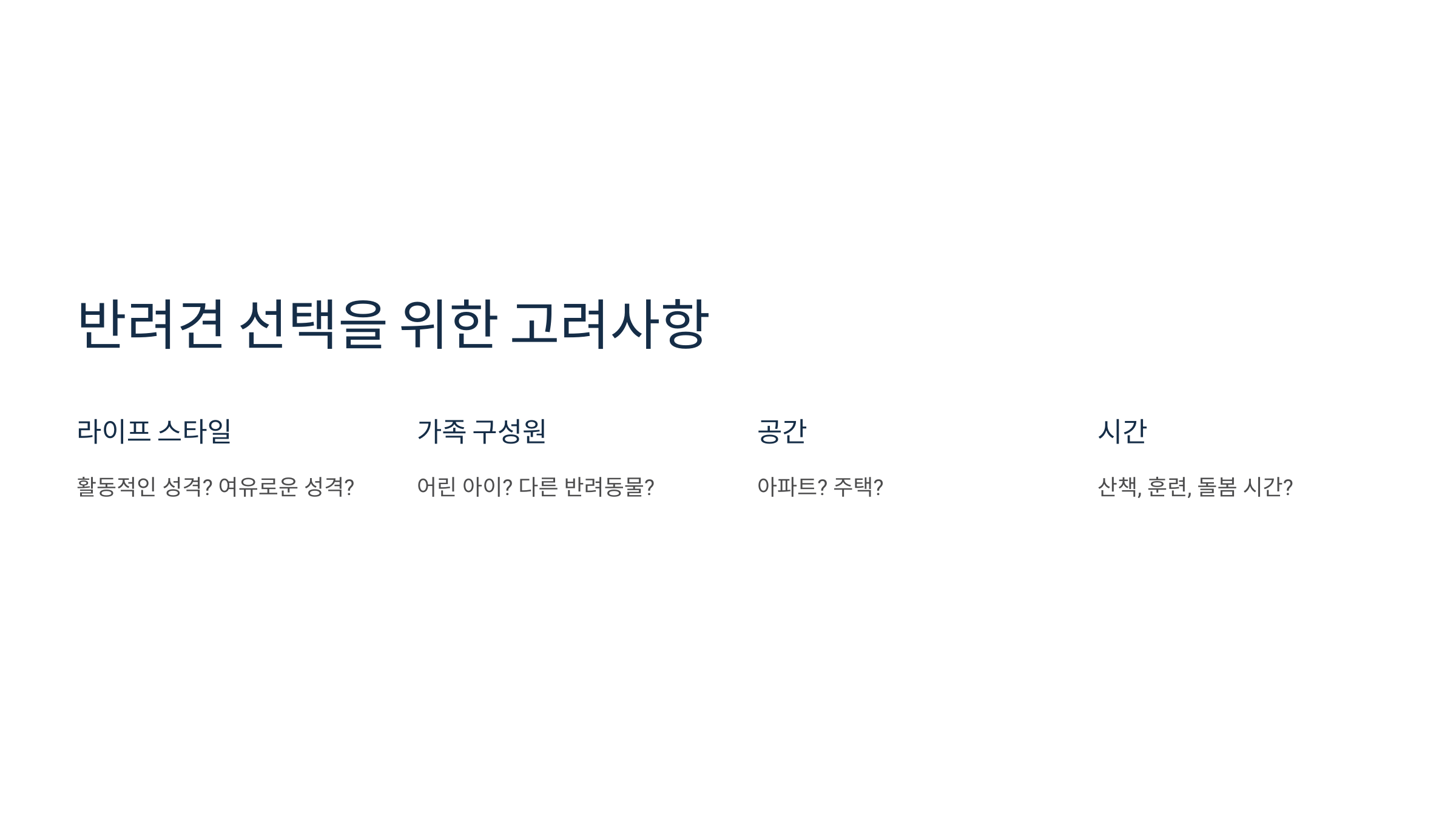 A1. 반려견의 특성을 잘 이해하고, 경제적·시간적 여유가 있는지 고려하는 것이 가장 중요합니다.
